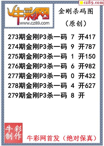 > 金刚杀码279期体彩P3图迷(原创)