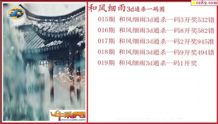 26年019期3d 和风细雨通杀一码图