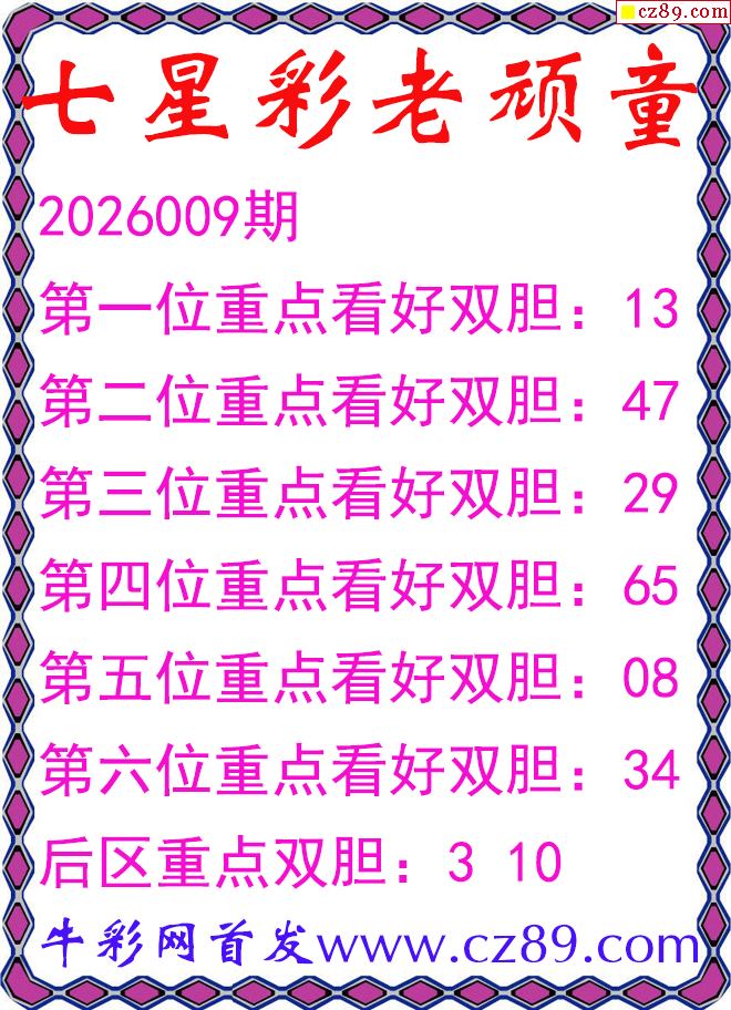 首页 > 七星彩预测 > 七星彩2026009期老顽童双胆图谜